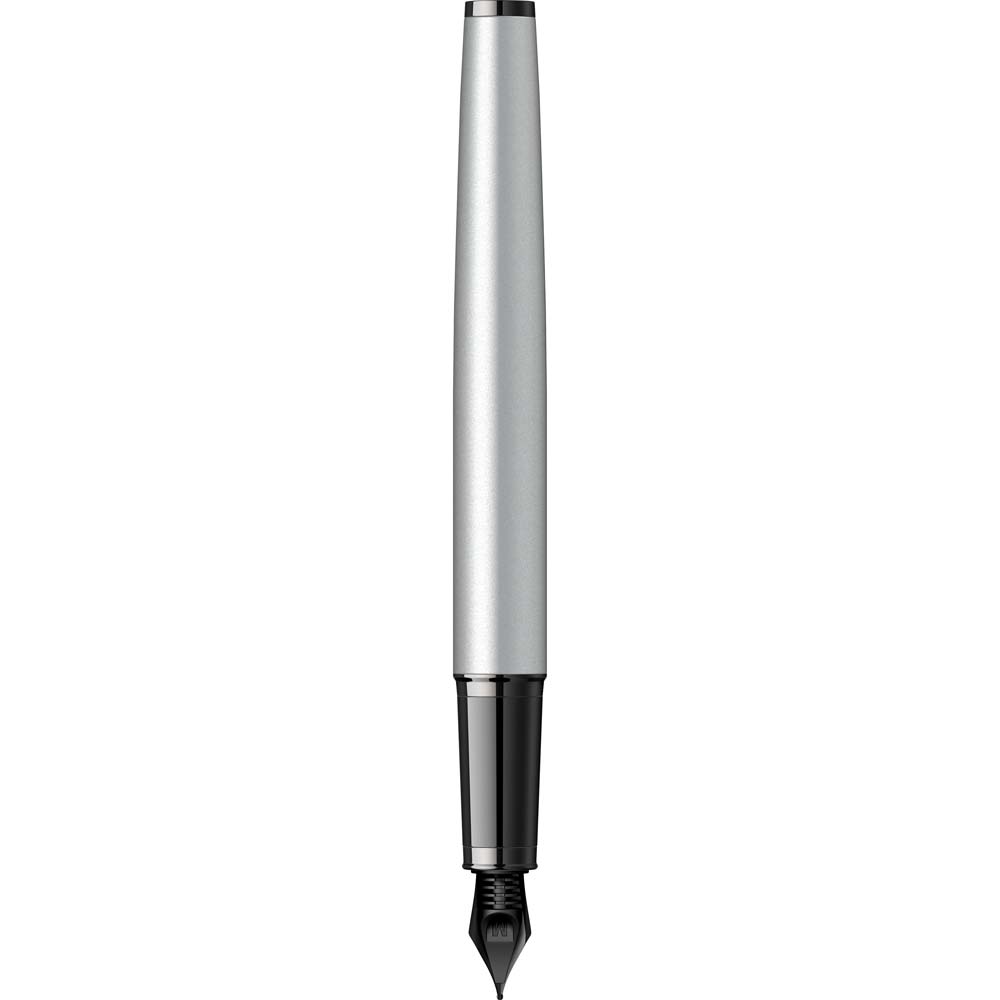 - Peniță din oțel inoxidabil, placată prin tehnologie PVD, cu pastilă de iridiu la vârf. Funcționează cu cartuș proprietar și/sau convertor.